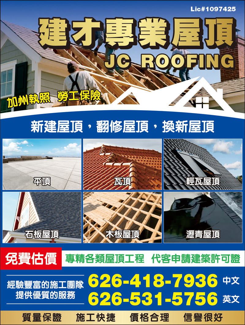洛杉磯建才專業屋頂公司是一家提供住宅、商業大樓屋頂更換工程服務的專業屋頂工程公司。